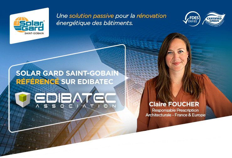 Solar Gard Saint-Gobain rejoint EDIBATEC Les films solaires Solar Gard Saint-Gobain sont désormais disponibles sur la base de données EDIBATEC, avec l’ensemble des données techniques nécessaires à vos études thermiques et énergétiques. Solar Gard Saint-Gobain, c’est la solution rapide et efficace pour améliorer la performance thermique des vitrages, dans vos projets de rénovation énergétique. Des performances exploitables aussi bien dans vos calculs réglementaires que dans … Continued
